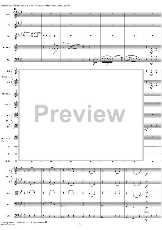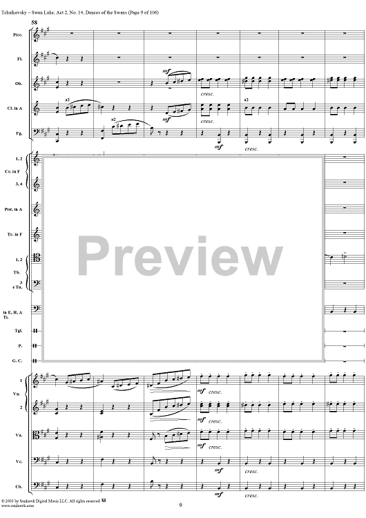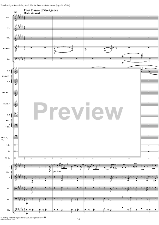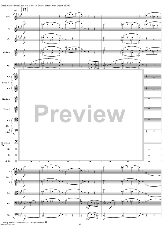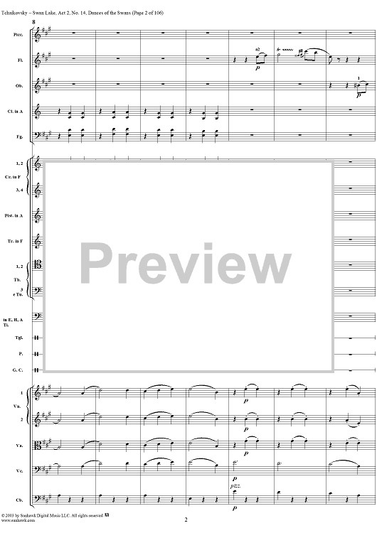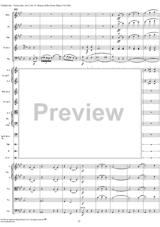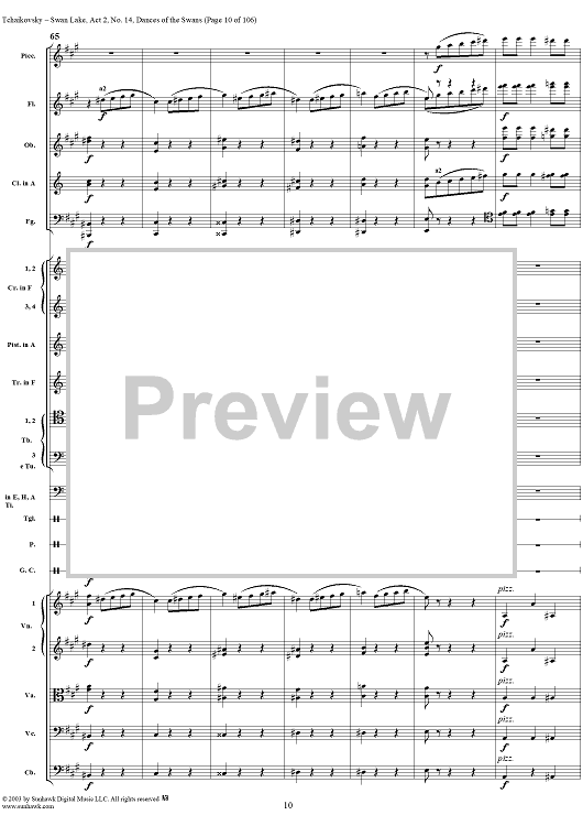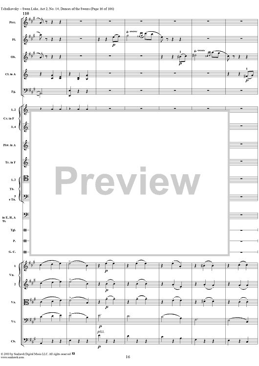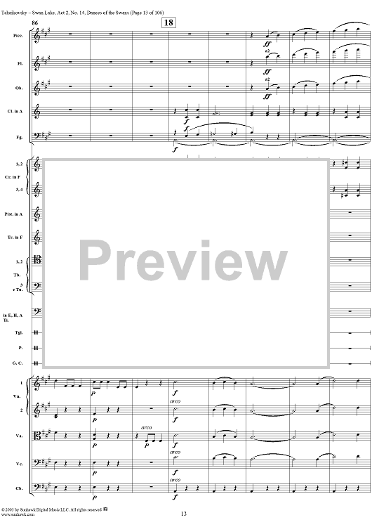 Digital Sheet Music for Swan Lake, No. 14: Dances of the Swans - Score by Peter Ilyich Tchaikovsky scored for Orchestra; id:290738