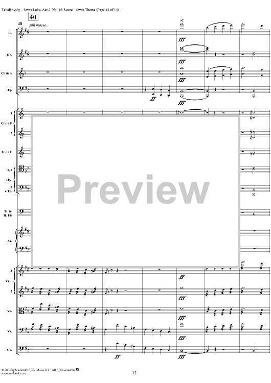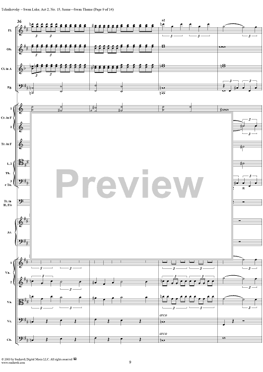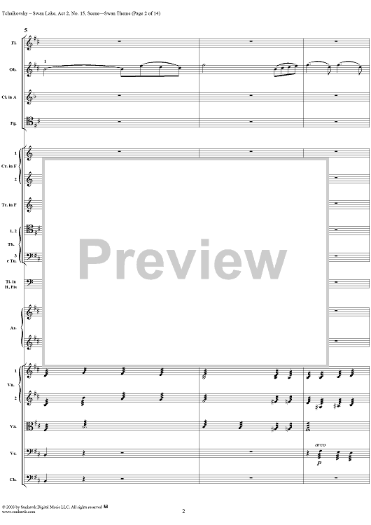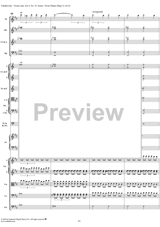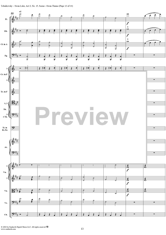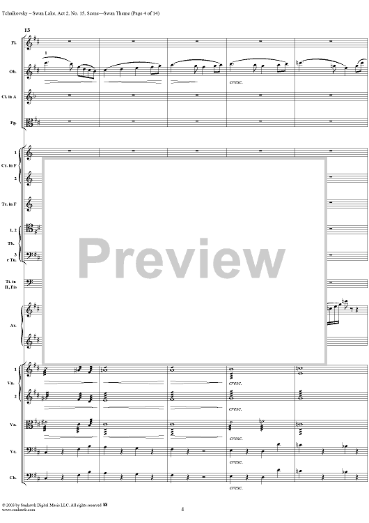 Digital Sheet Music for Swan Lake, No. 15: Swan Theme - Score by Peter Ilyich Tchaikovsky scored for Orchestra; id:290739