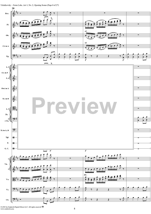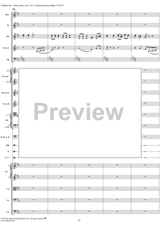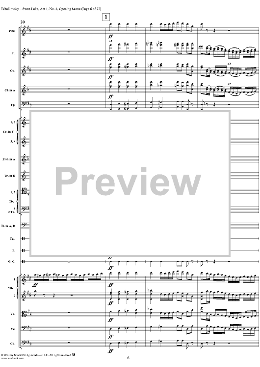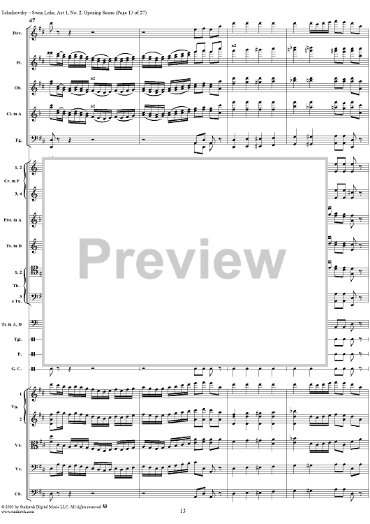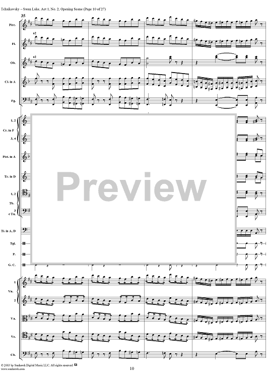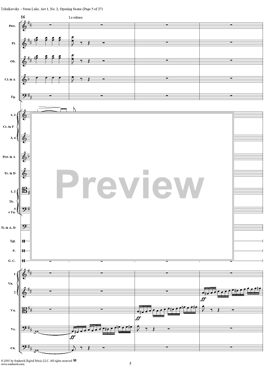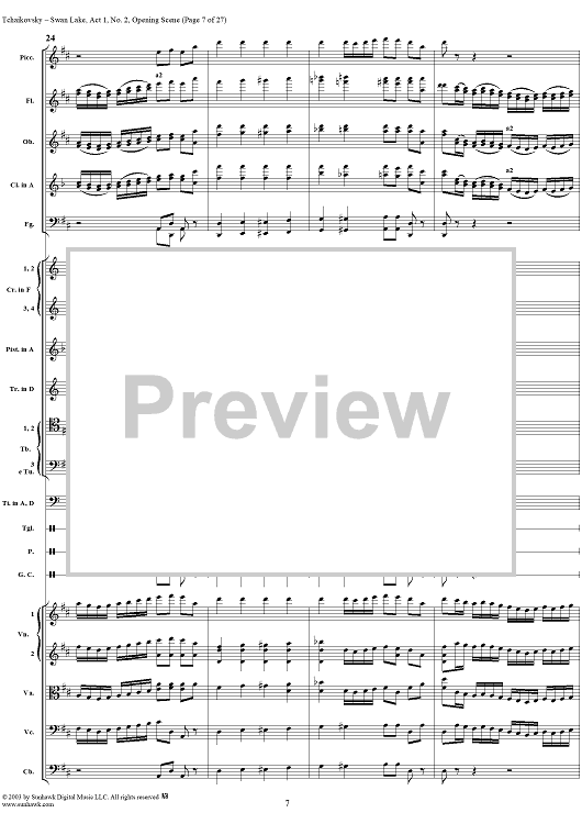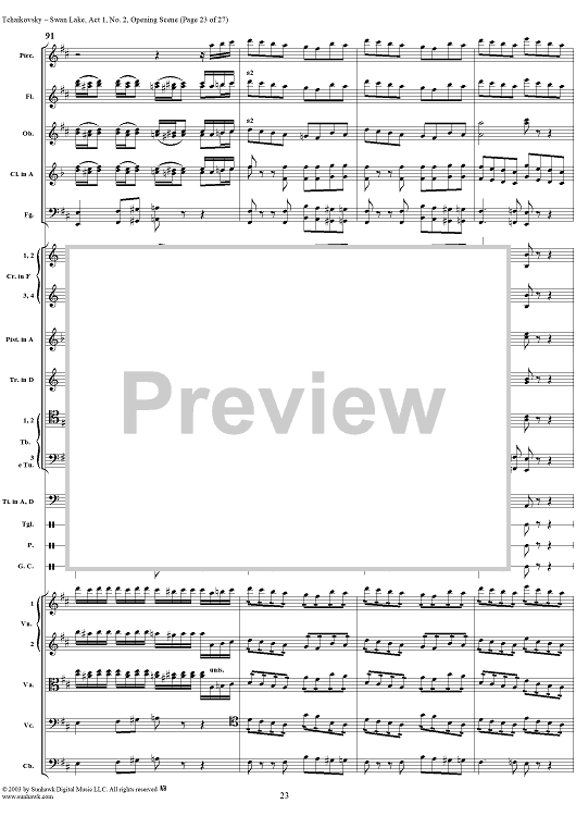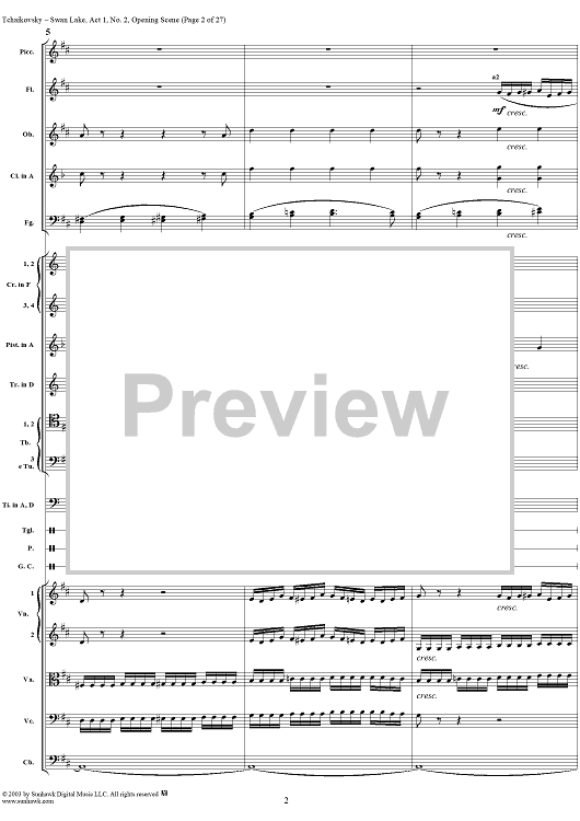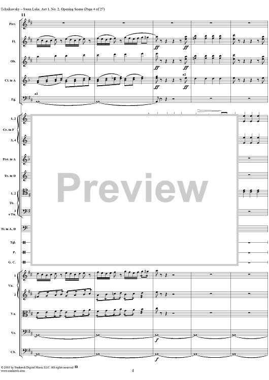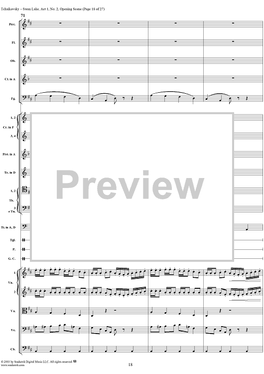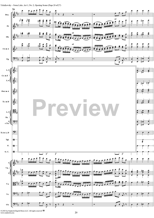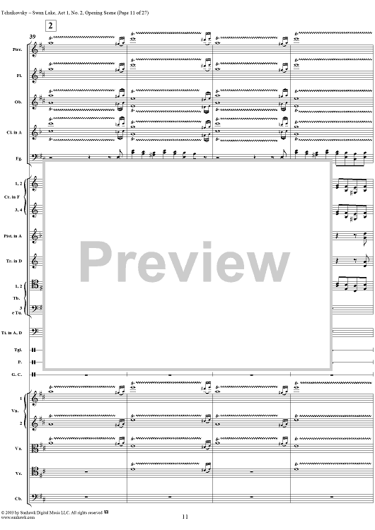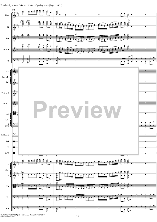Digital Sheet Music for Swan Lake, No. 2: Opening Scene - Score by Peter Ilyich Tchaikovsky scored for Orchestra; id:290727