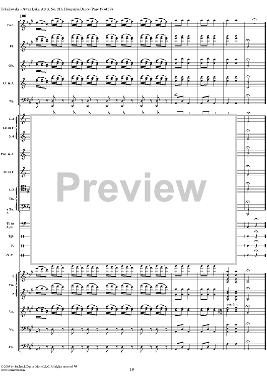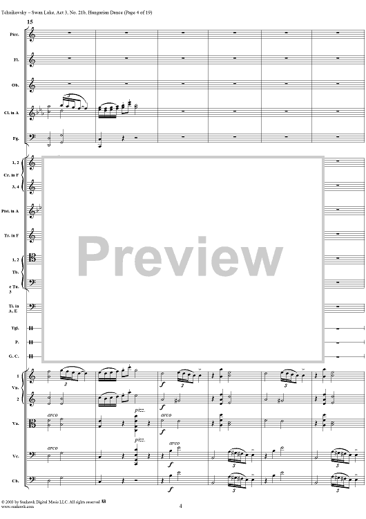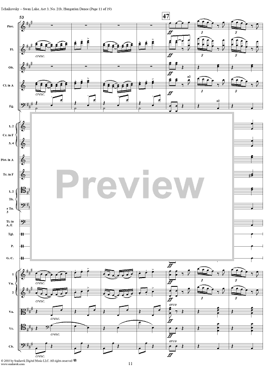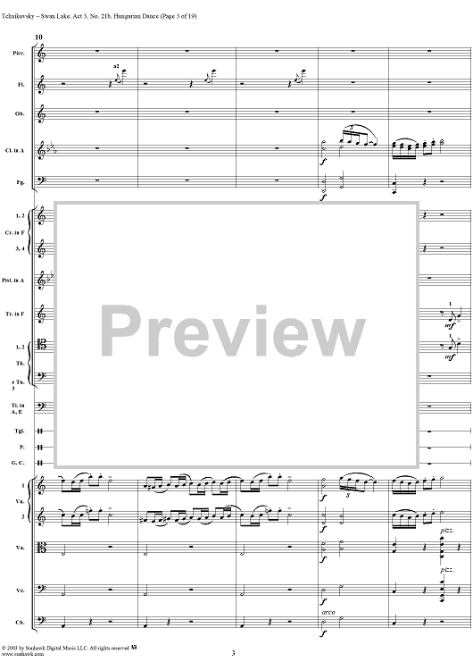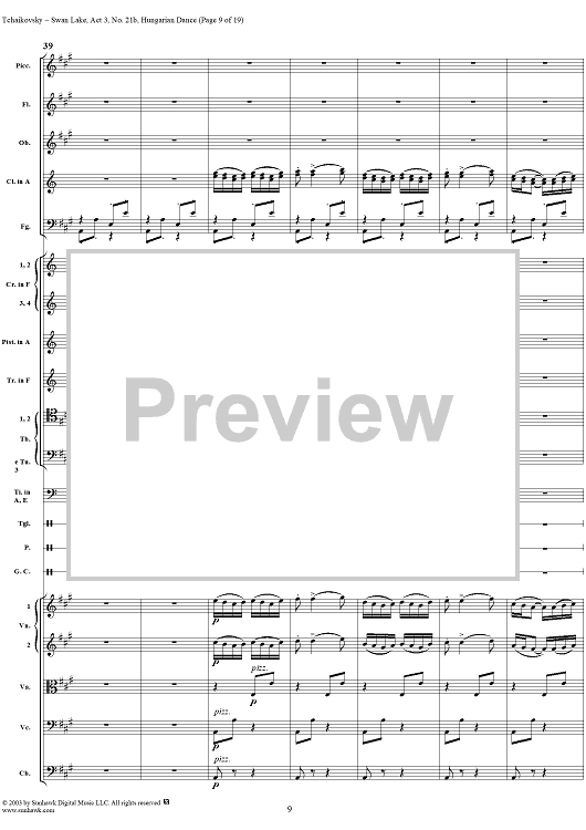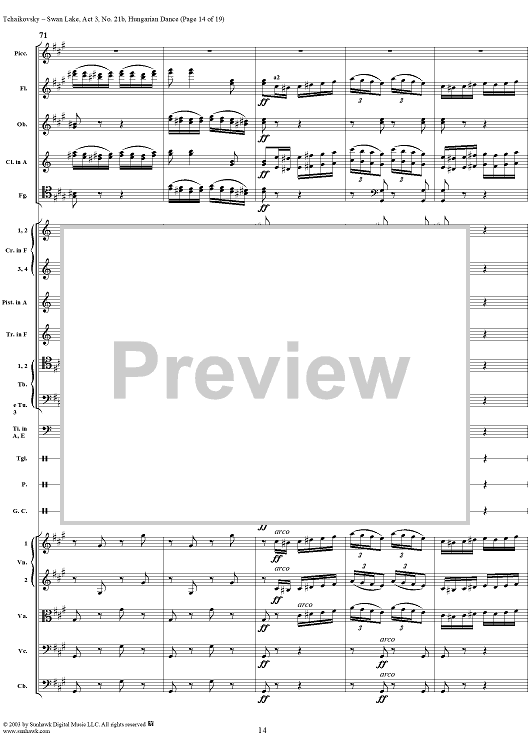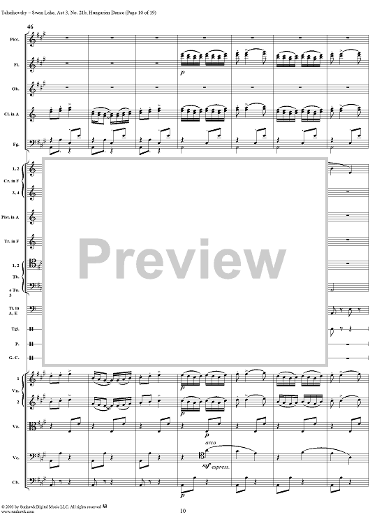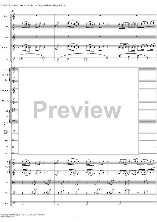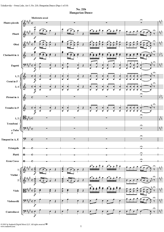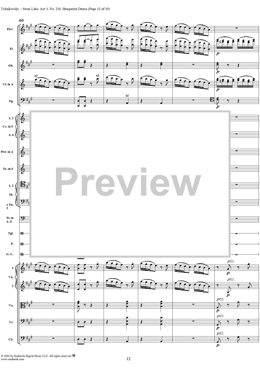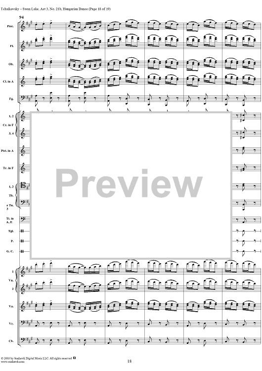 Digital Sheet Music for Swan Lake, No. 21b: Hungarian Dance - Score by Peter Ilyich Tchaikovsky scored for Orchestra; id:170135