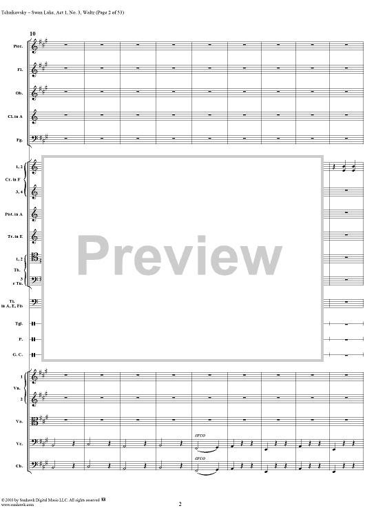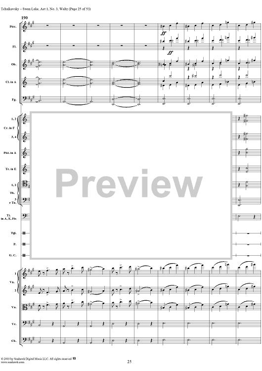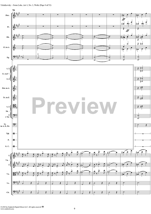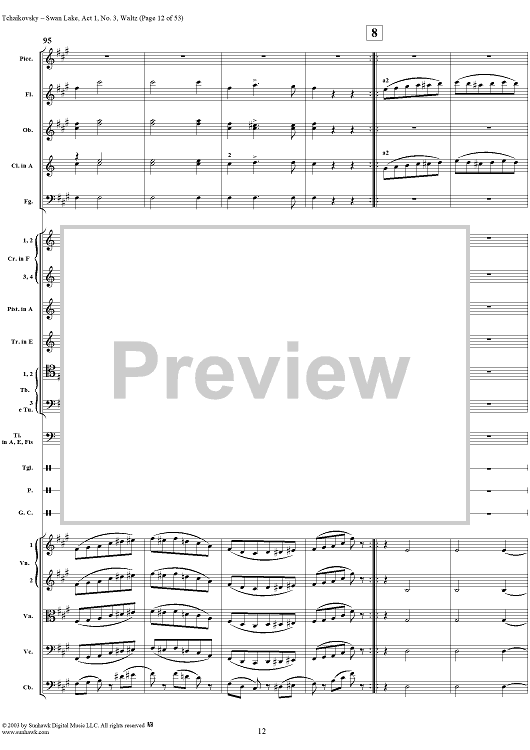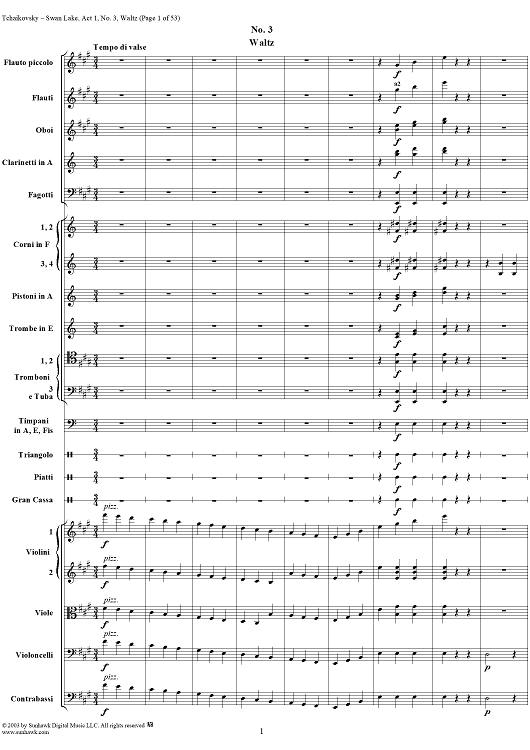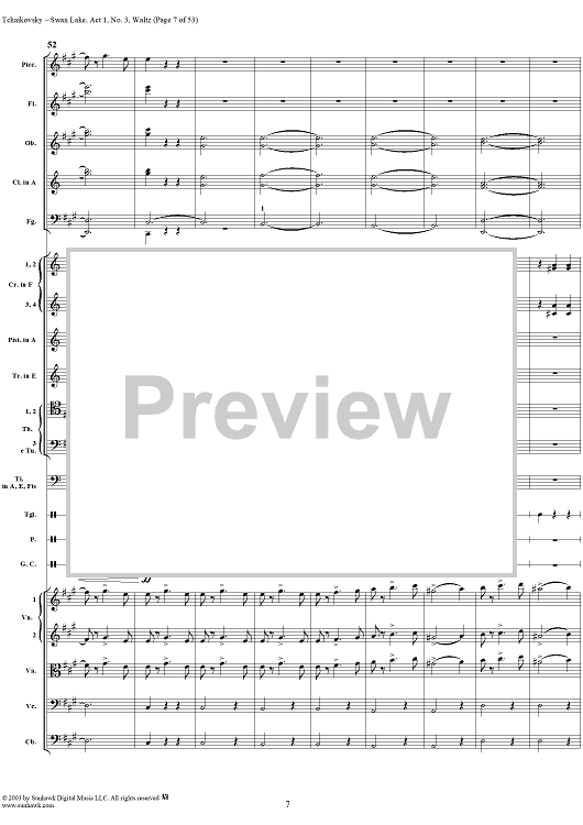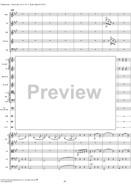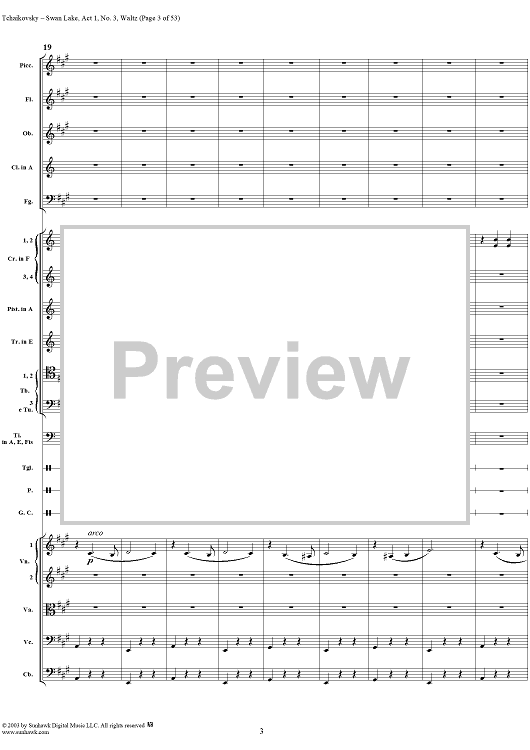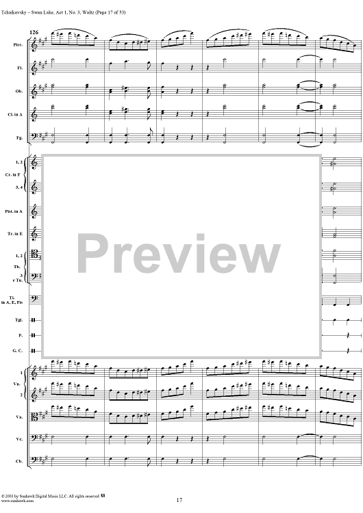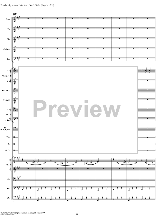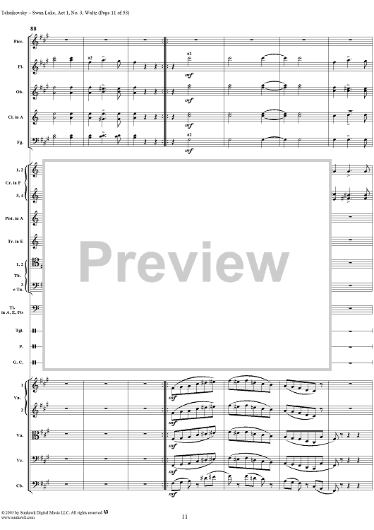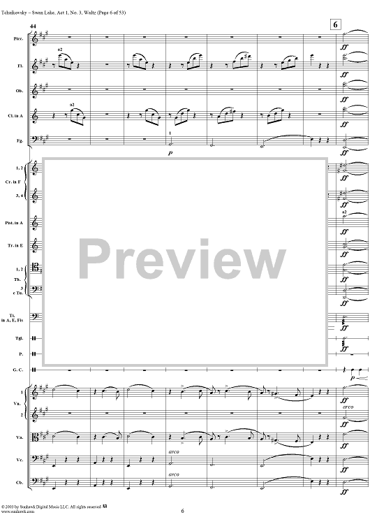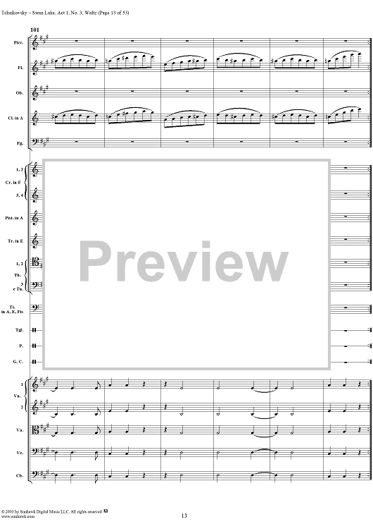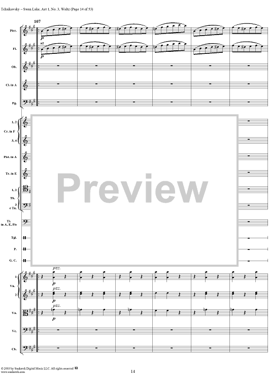 Digital Sheet Music for Swan Lake, No. 3: Waltz in A Major - Score by Peter Ilyich Tchaikovsky scored for Orchestra; id:170131