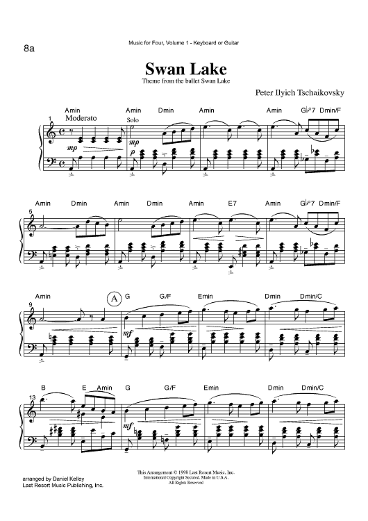Digital Sheet Music for Swan Lake - Theme from the ballet Swan Lake - Keyboard or Guitar by , Peter Ilyich Tchaikovsky, Daniel Kelley scored for Instrumental Quartet; id:423527