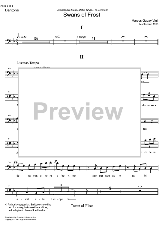 Digital Sheet Music for Swans of Frost - Baritone by , Marcos Gabay Vigil scored for Voice/Ensemble; id:331617