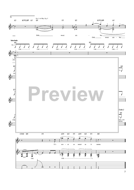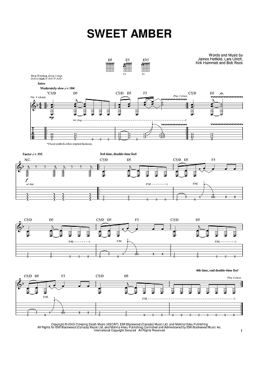 Digital Sheet Music for Sweet Amber by Metallica, Kirk Hammett, James Hetfield, Lars Ulrich scored for Easy Guitar; id:373697