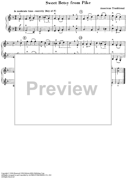 "Sweet Betsy from Pike" Sheet Music by Traditional American Melody