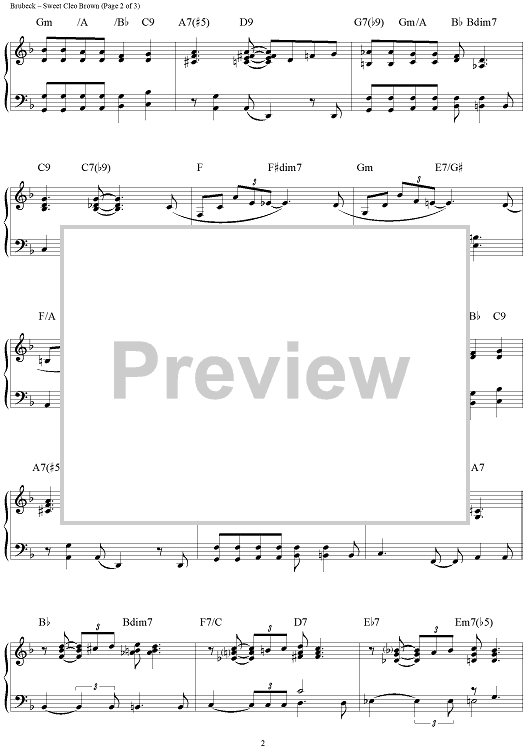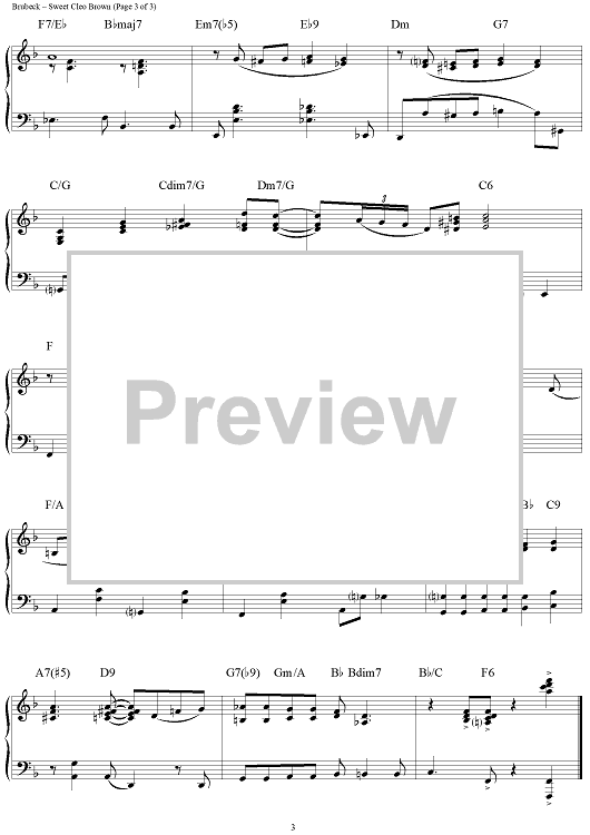 Digital Sheet Music for Sweet Cleo Brown by Dave Brubeck scored for Piano Solo; id:275578