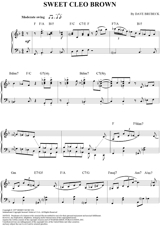 "Sweet Cleo Brown" Sheet Music by Dave Brubeck