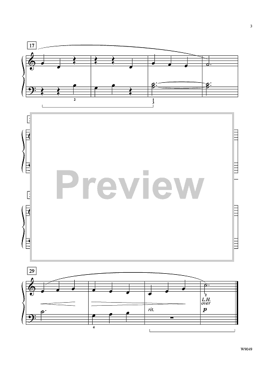 The tender, rocking motion of this early elementary lullaby is perfect for studying legato in both hands. Written in Middle C position.