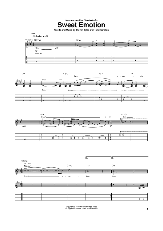 Digital Sheet Music for Sweet Emotion by Aerosmith, Steven Tyler, Tom Hamilton scored for Guitar Tab; id:367898