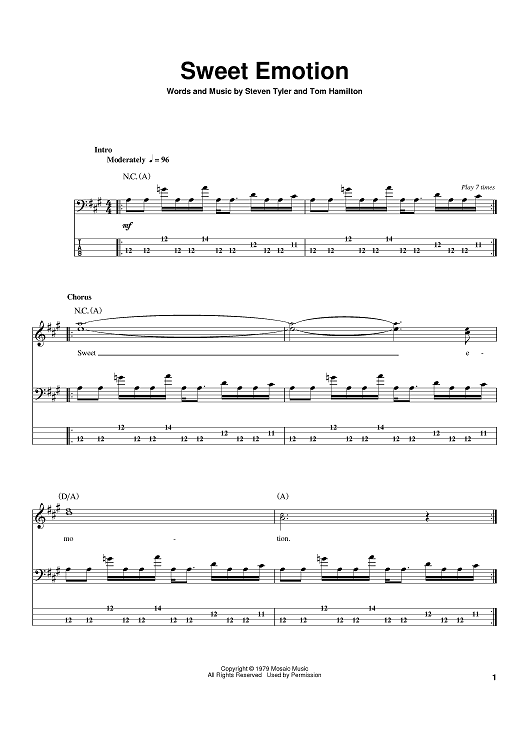 Digital Sheet Music for Sweet Emotion by Aerosmith, Steven Tyler, Tom Hamilton scored for Bass Tab; id:384361