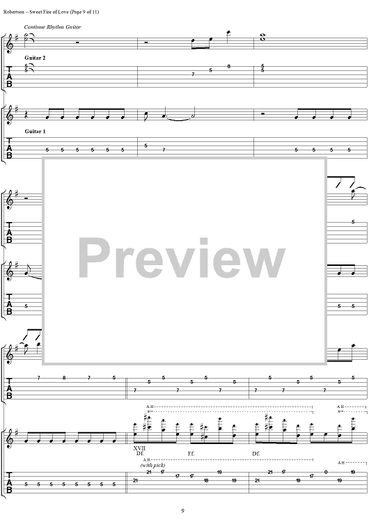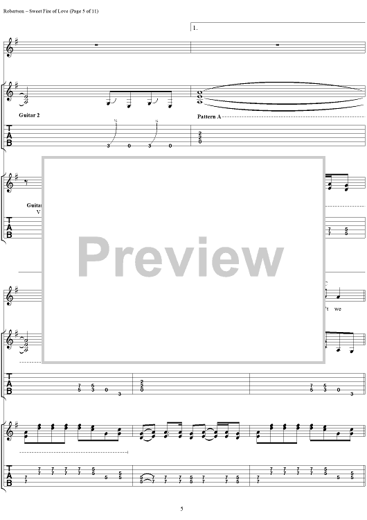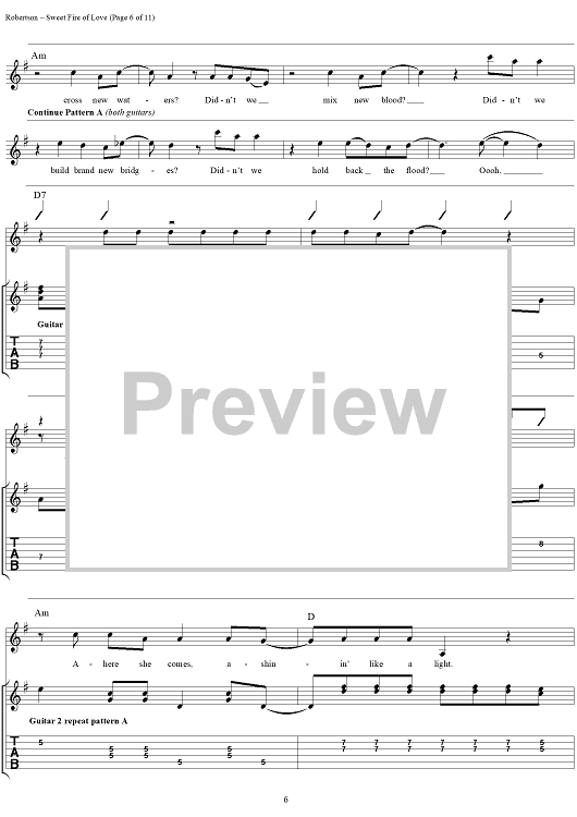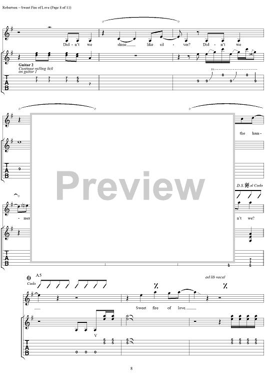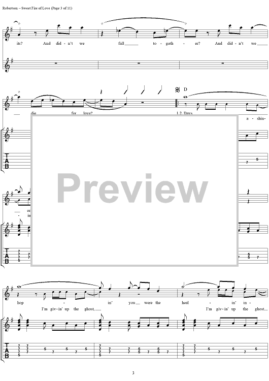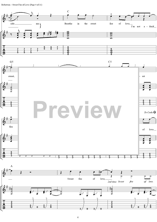 "Sweet Fire of Love" Sheet Music by Robbie Robertson