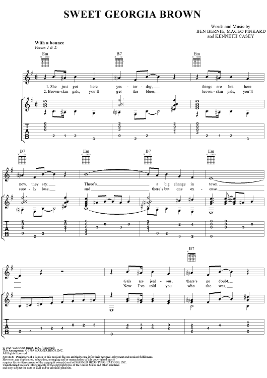 "Sweet Georgia Brown" Sheet Music by Ben Bernie