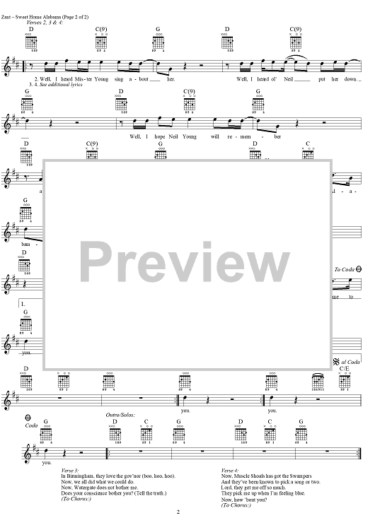 "Sweet Home Alabama" Sheet Music by Lynyrd Skynyrd