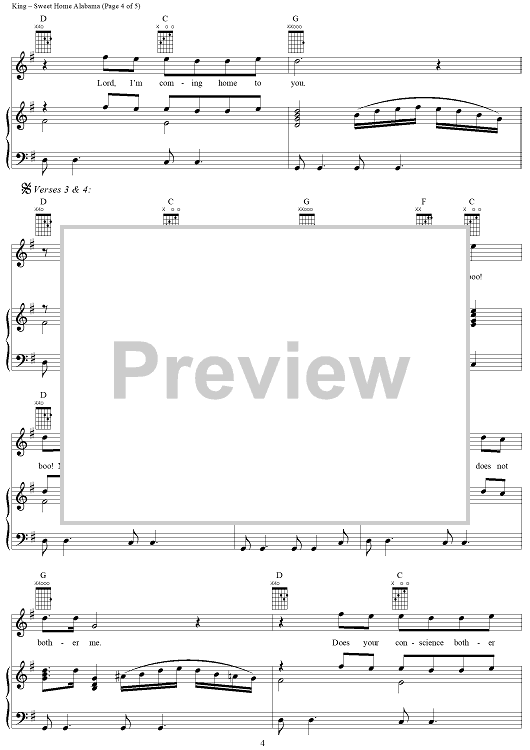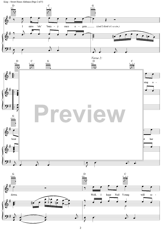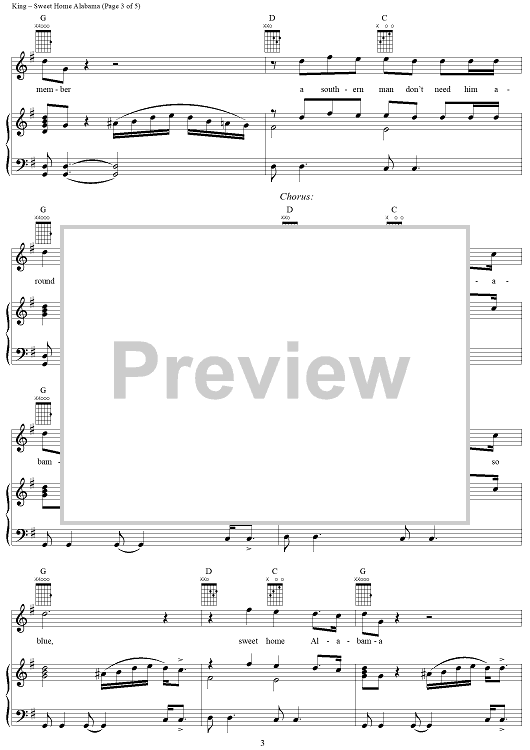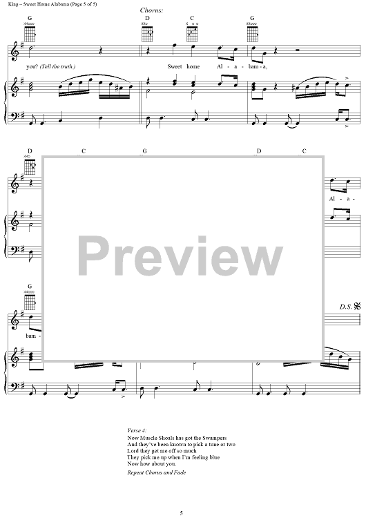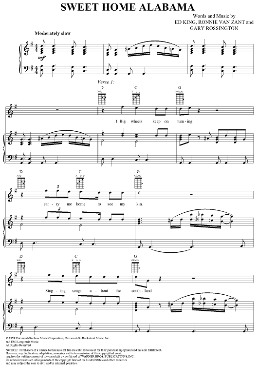 Digital Sheet Music for Sweet Home Alabama by Lynyrd Skynyrd, Ed King, Gary Rossington, Ronnie Van Zant scored for Piano/Vocal/Chords; id:286555