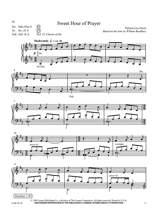 Digital Sheet Music for Sweet Hour of Prayer by , William B. Bradbury, Patricia Lou Harris scored for Organ Solo; id:437258