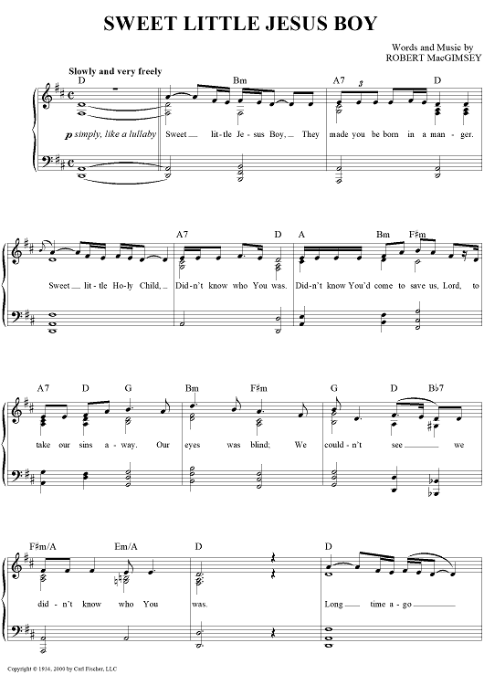 "Sweet Little Jesus Boy" Sheet Music by Robert MacGimsey