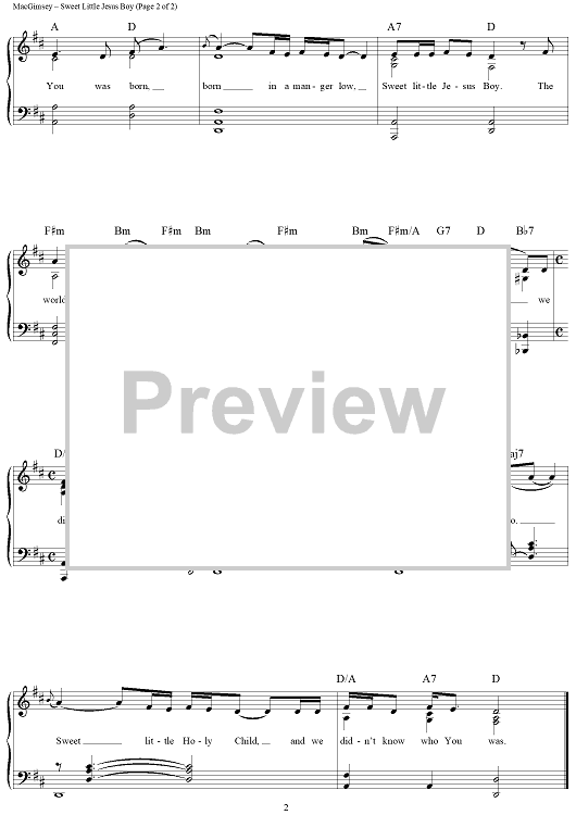Digital Sheet Music for Sweet Little Jesus Boy by Robert MacGimsey scored for Piano/Vocal; id:409740