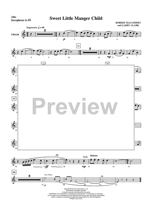 "Sweet Little Manger Child - Alto Sax" Sheet Music by Robert MacGimsey
