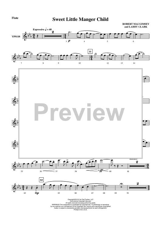 Digital Sheet Music for Sweet Little Manger Child - Flute by Larry Clark, Robert MacGimsey scored for Concert Band; id:431586