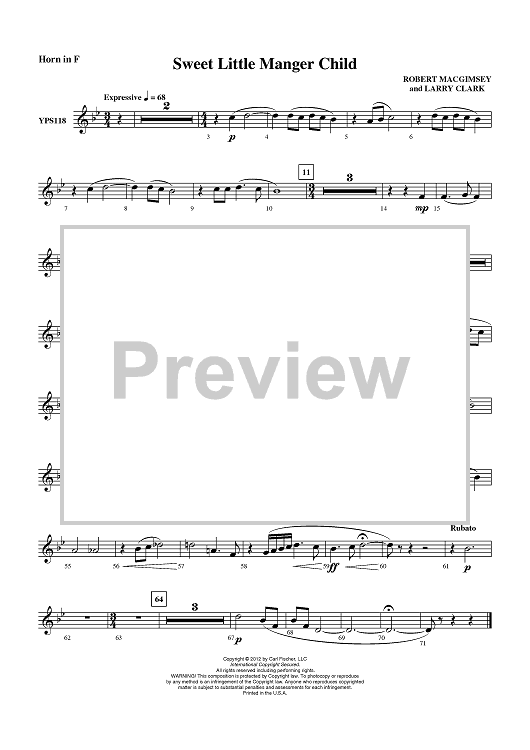 Digital Sheet Music for Sweet Little Manger Child - Horn in F by Larry Clark, Robert MacGimsey scored for Concert Band; id:431597