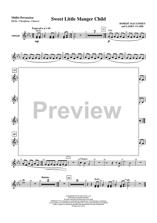 Digital Sheet Music for Sweet Little Manger Child - Mallet Percussion by Larry Clark, Robert MacGimsey scored for Concert Band; id:431602