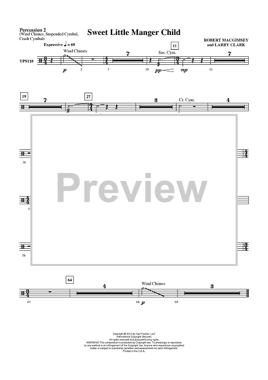 Digital Sheet Music for Sweet Little Manger Child - Percussion 2 by Larry Clark, Robert MacGimsey scored for Concert Band; id:431605