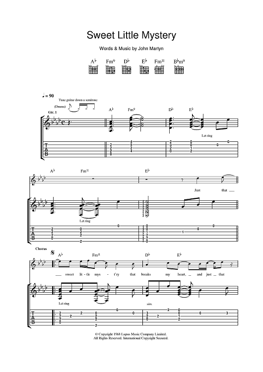 Digital Sheet Music for Sweet Little Mystery by John Martyn scored for Guitar Tab; id:401181