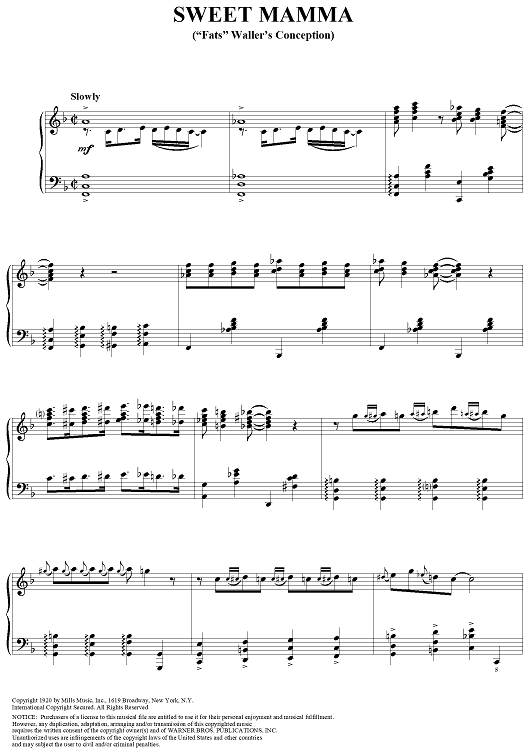 "Sweet Mamma (''Fats'' Waller's Conception)" Sheet Music by Fats Waller