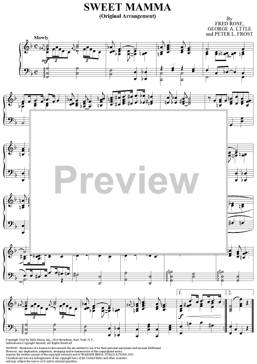Digital Sheet Music for Sweet Mamma (Original Arrangement) by Fred Rose, Fats Waller, Geo. A. Little, Peter L. Frost scored for Piano Solo; id:316965