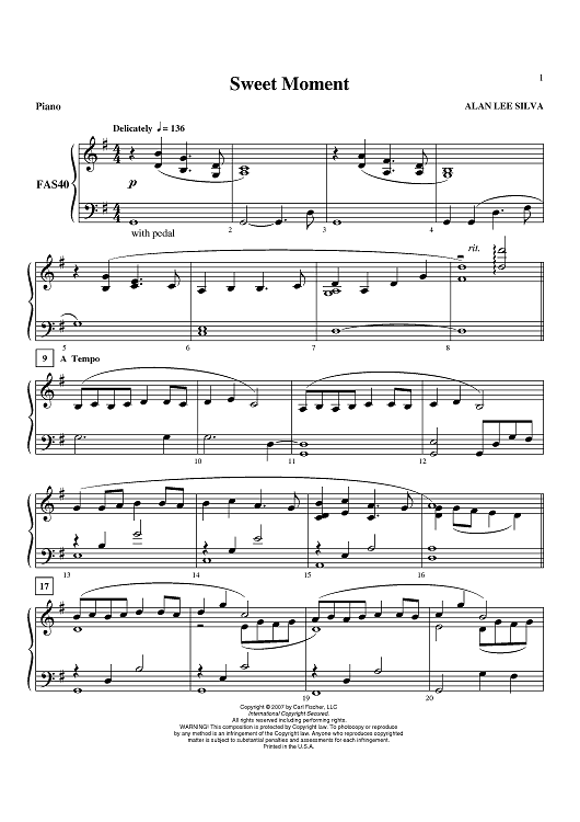 "Sweet Moment - Piano" Sheet Music by Alan Lee Silva