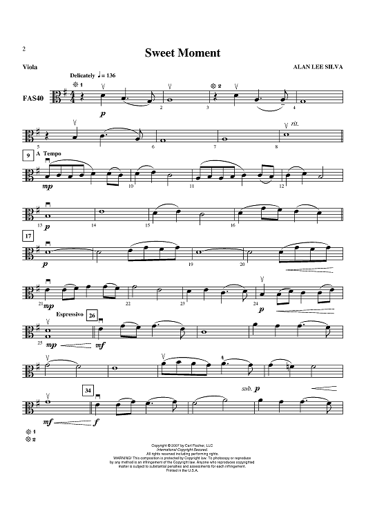 "Sweet Moment - Viola" Sheet Music by Alan Lee Silva