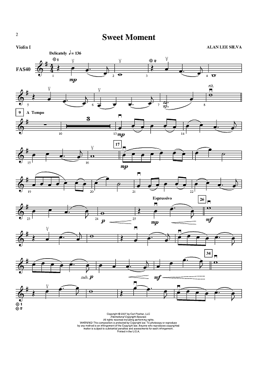 "Sweet Moment - Violin 1" Sheet Music by Alan Lee Silva
