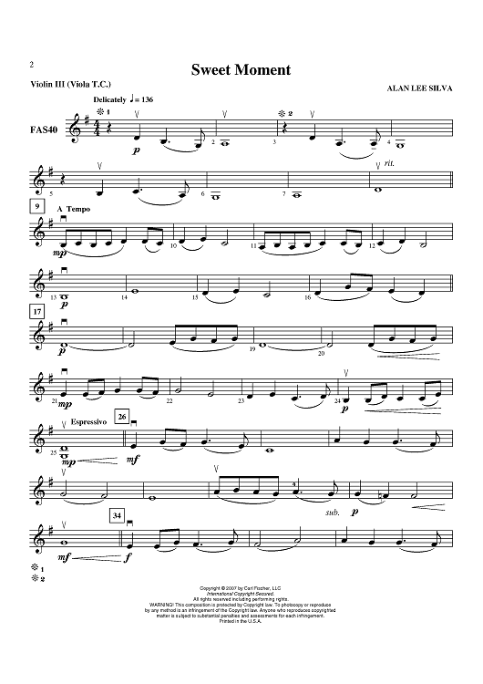"Sweet Moment - Violin 3" Sheet Music by Alan Lee Silva