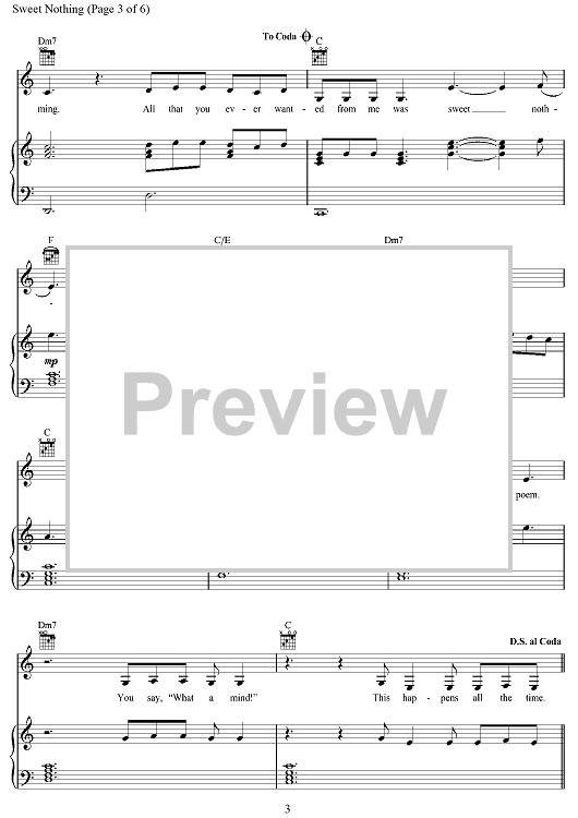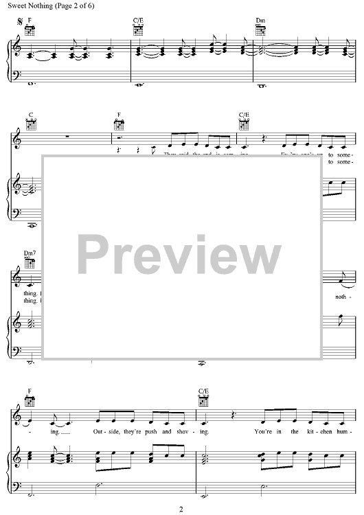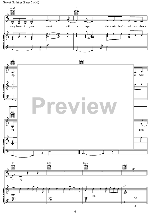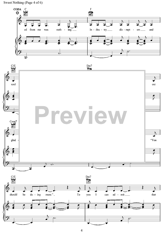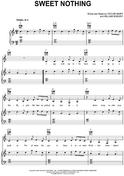 Digital Sheet Music for Sweet Nothing by Taylor Swift, William Bowery scored for Piano/Vocal/Chords; id:498173