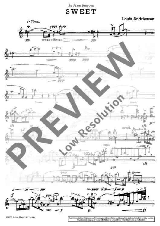 Digital Sheet Music for Sweet by Louis Andriessen scored for Treble Recorder; id:490423