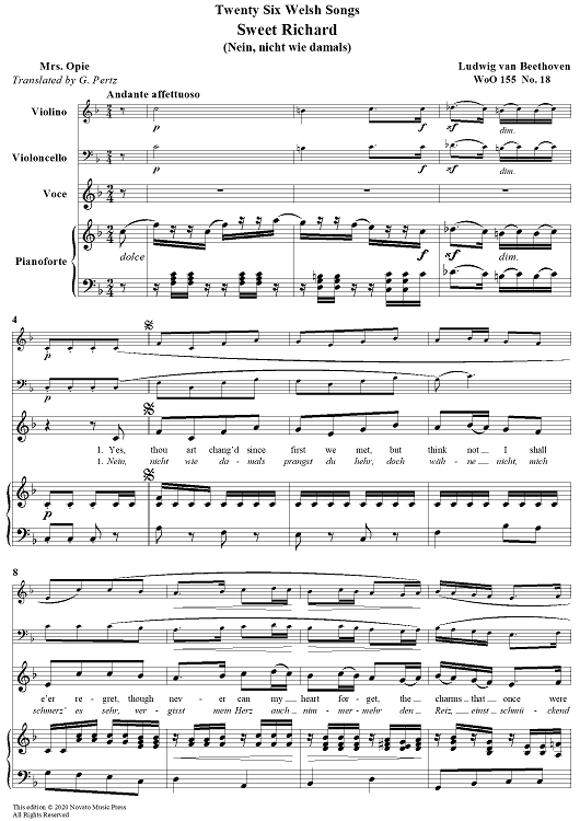 "Sweet Richard - from 26 Welsh Songs" Sheet Music by Ludwig van Beethoven