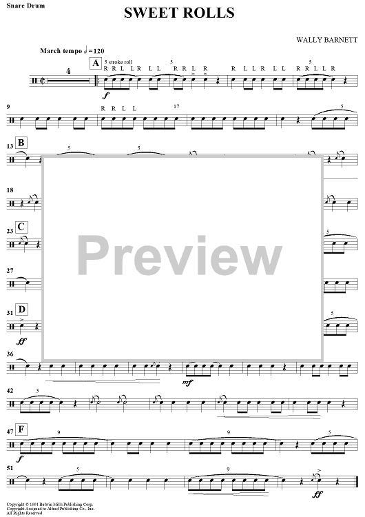 Digital Sheet Music for Sweet Rolls by Wally Barnett scored for Snare Drum/Piano; id:439487