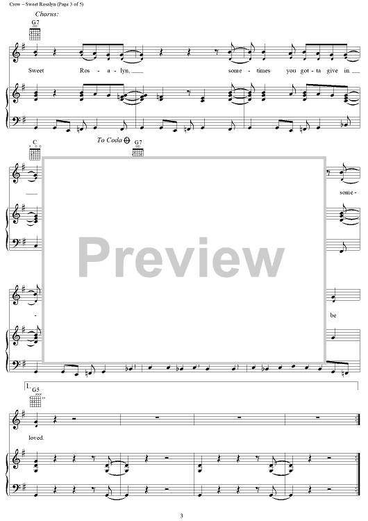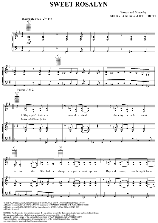 Digital Sheet Music for Sweet Rosalyn by Sheryl Crow, Jeff Trott scored for Piano/Vocal/Chords; id:115882