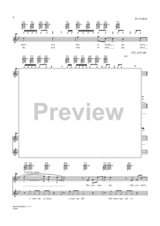 "Sweet Sacrifice" Sheet Music by Evanescence