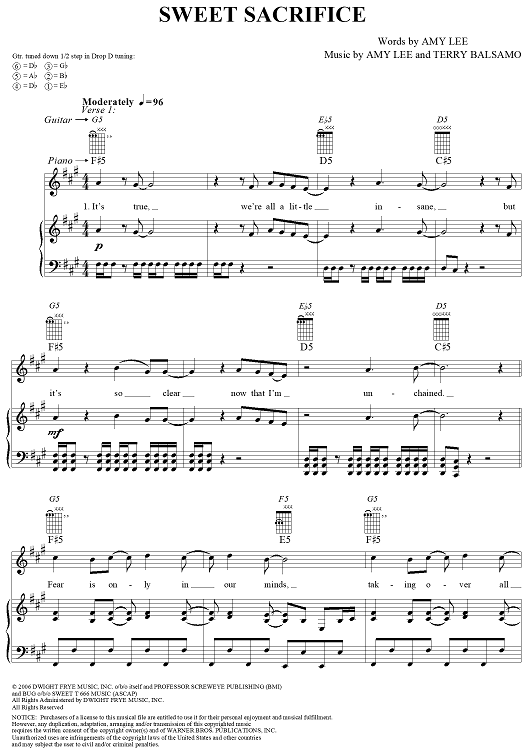 "Sweet Sacrifice" Sheet Music by Evanescence