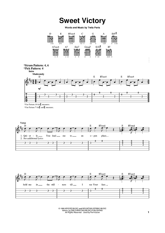 Digital Sheet Music for Sweet Victory by Twila Paris scored for Easy Guitar; id:372568
