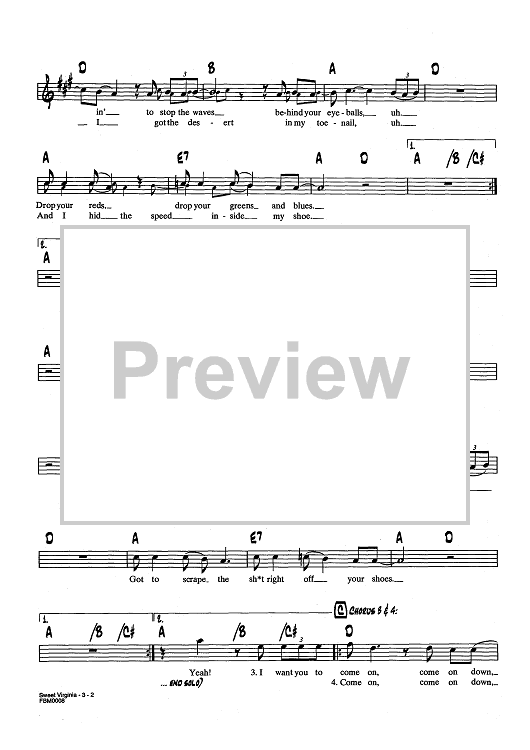 Digital Sheet Music for Sweet Virginia by Keith Richards, The Rolling Stones, Mick Jagger scored for Lead Sheet; id:437605