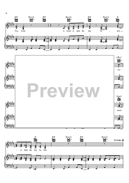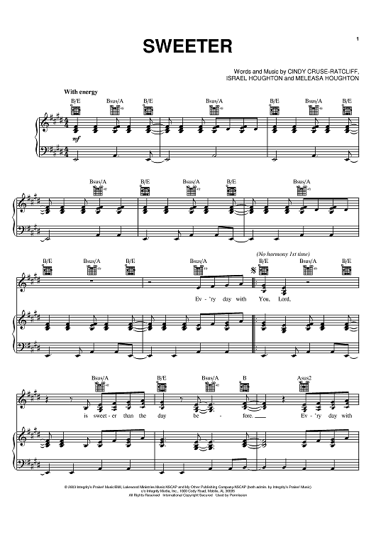 Digital Sheet Music for Sweeter by Israel Houghton, Cindy Cruse-Ratcliff, Meleasa Houghton scored for Piano/Vocal/Chords; id:401495