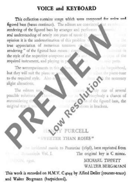 "Sweeter than Roses in G minor" Sheet Music by Henry Purcell