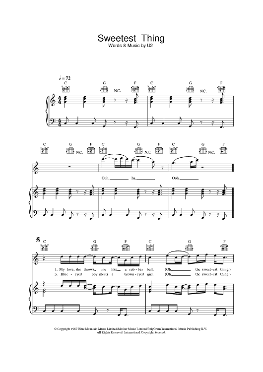 Digital Sheet Music for Sweetest Thing by U2 scored for Piano/Vocal/Chords; id:385132