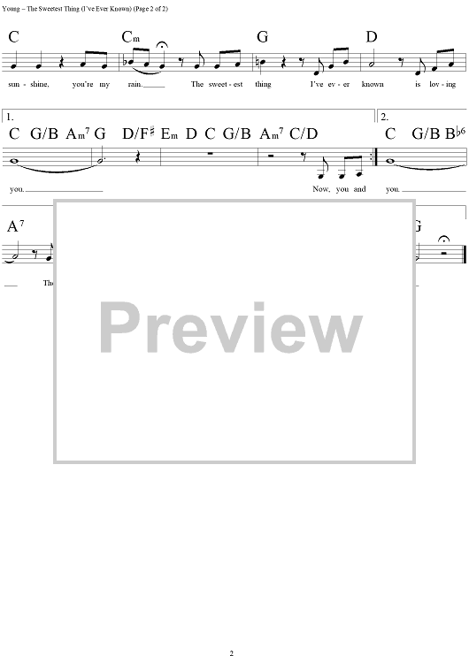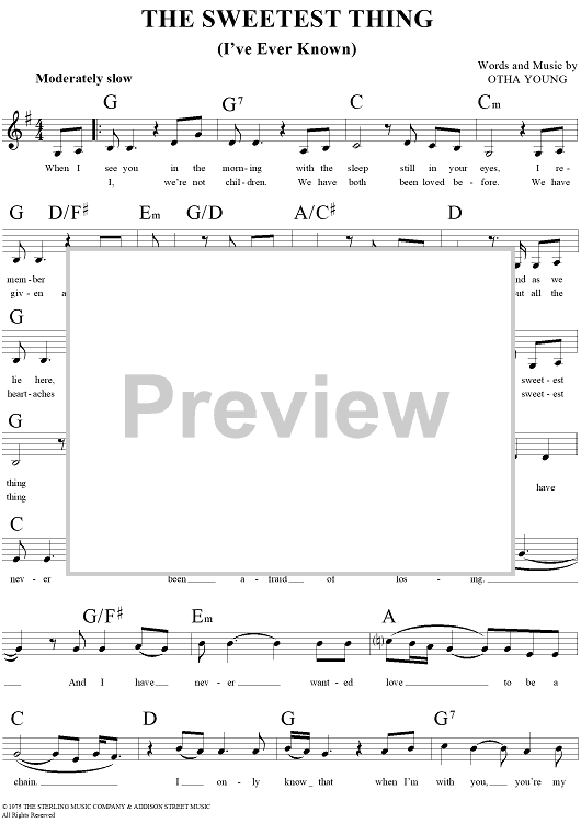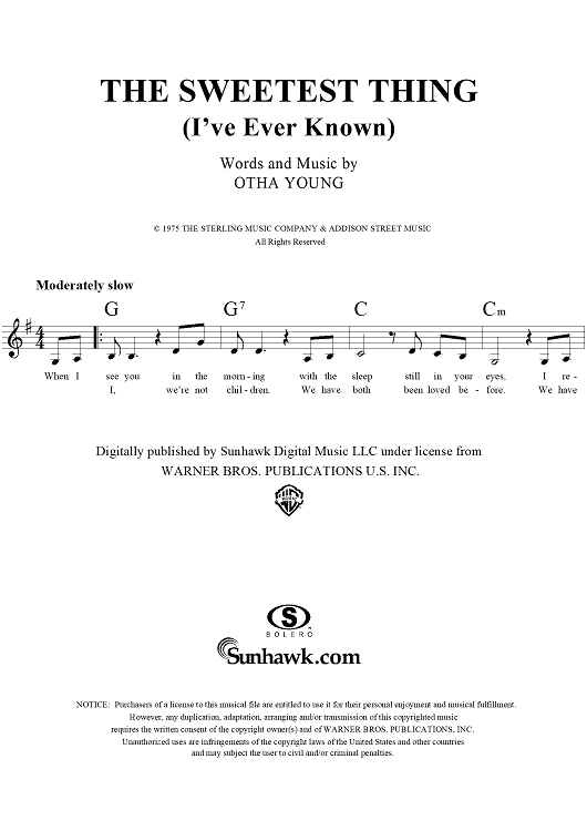 Digital Sheet Music for Sweetest Thing, The (I've Ever Known) by Otha Young, Juice Newton scored for Lead Sheet; id:262865