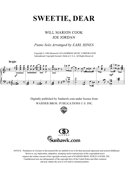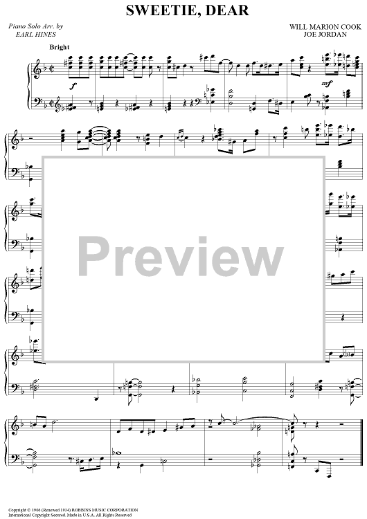 Digital Sheet Music for Sweetie, Dear by Earl Hines, Joe Jordan, Will Marion Cook scored for Piano Solo; id:170078