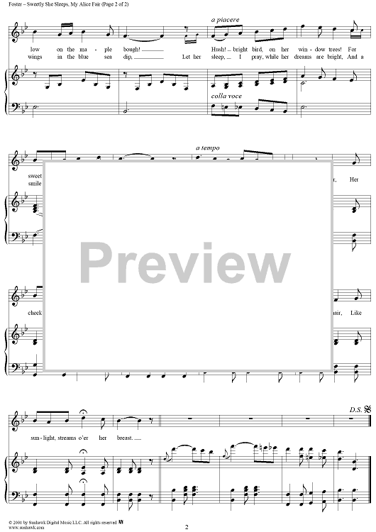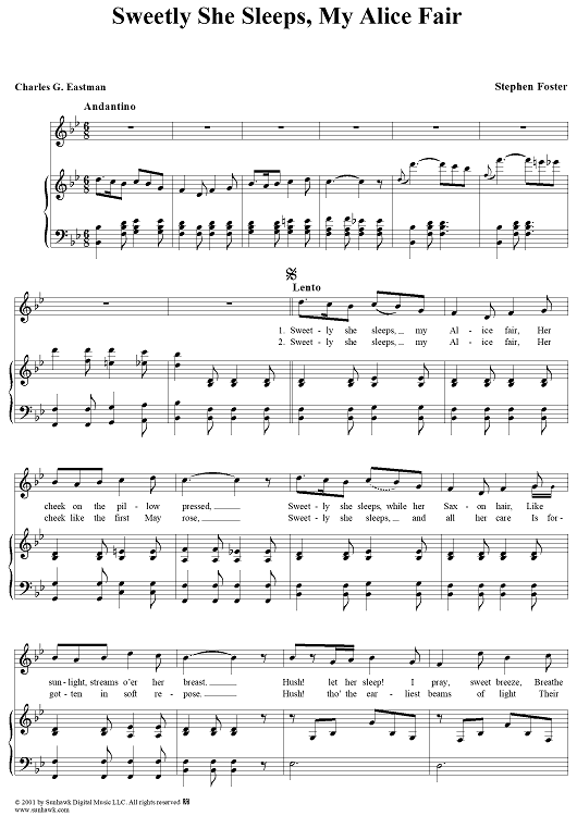 Digital Sheet Music for Sweetly She Sleeps, My Alice Fair by Charles G. Eastman, Stephen Foster scored for Piano/Vocal; id:269509