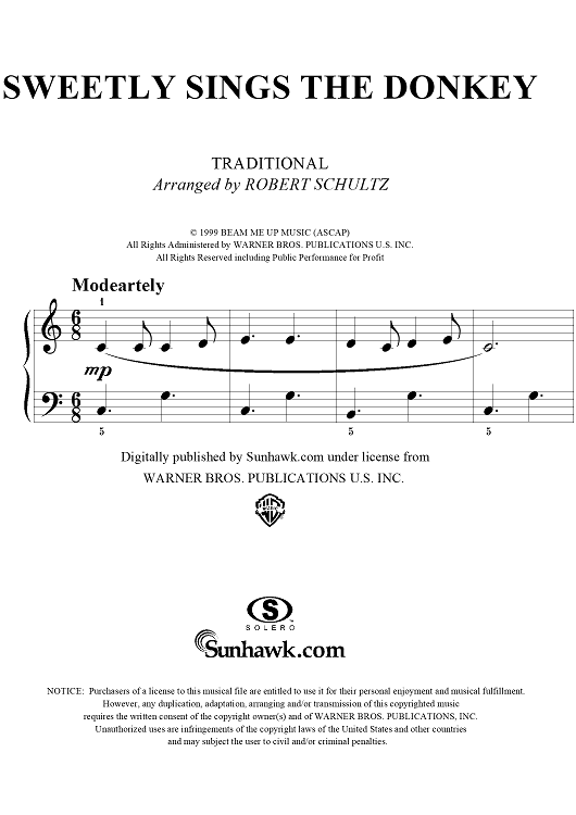"Sweetly Sings the Donkey" Sheet Music by Traditional