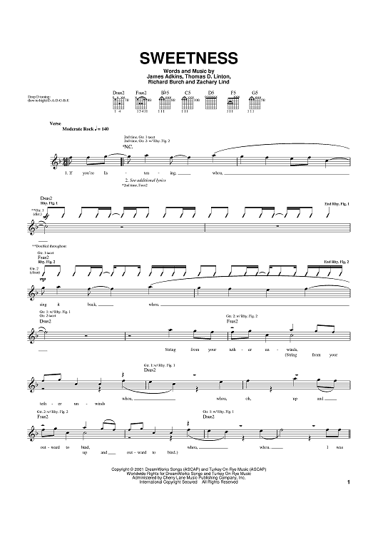 Digital Sheet Music for Sweetness by James Adkins, Richard Burch, Jimmy Eat World, Tom Linton scored for Guitar Tab; id:369844